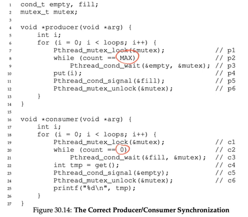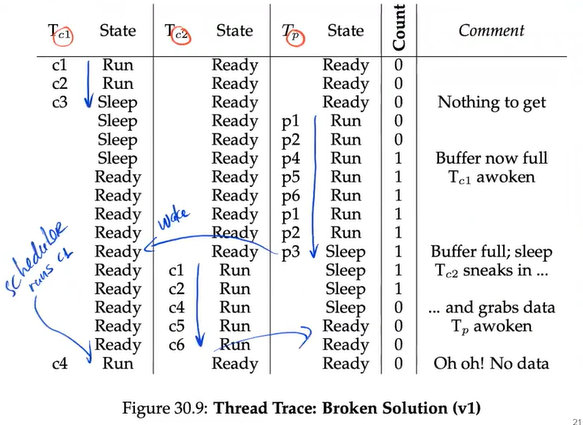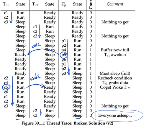 SOLUTION: use TWO condition variables, one for empty, one for full