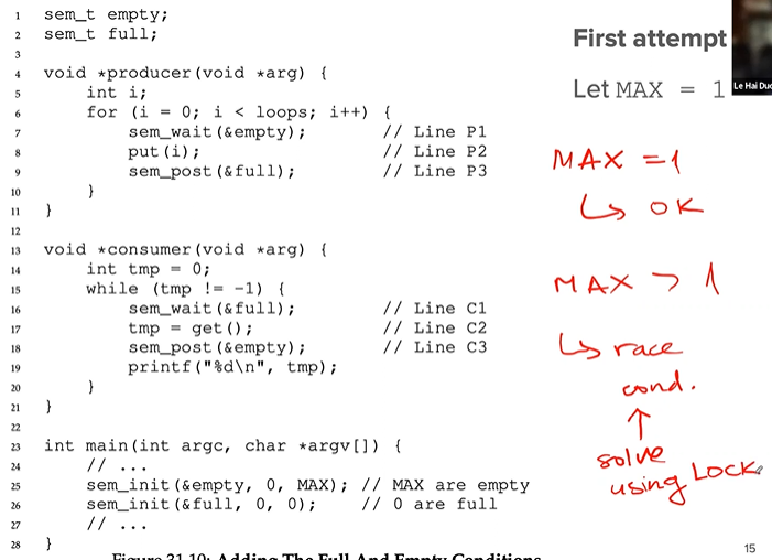 PROBLEM: race condition happens when MAX > 1 - Two or More threads try to edit the same thing.