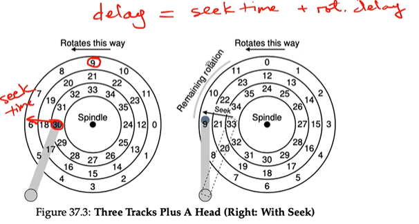 TI/O=Tseek+Trotation+TtransferT_{I/O} = T_{seek} + T_{rotation} + T_{transfer}