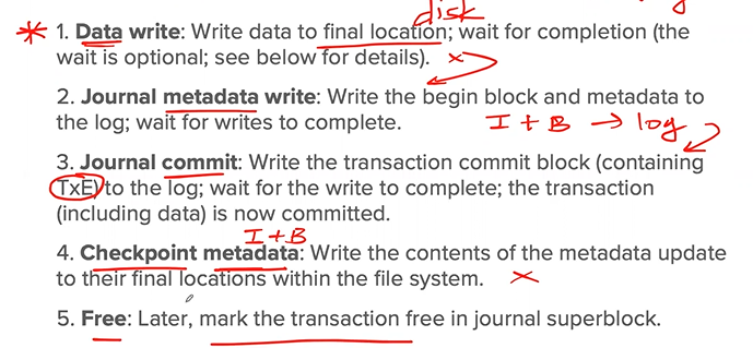1. Free: sometime later, mark the transaction free in the journal by updating the journal superblock